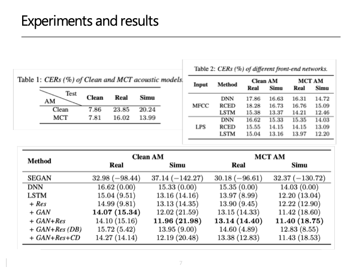[2] K. Wang et al, "Investigating Generative Adversarial Networks based Speech Dereverberation for Robust Speech Recognition," Interspeech 2018.