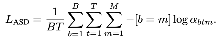 ASD. For active speaker detection, the normalized attention weights can be used to train the attention module directly with cross entropy loss.