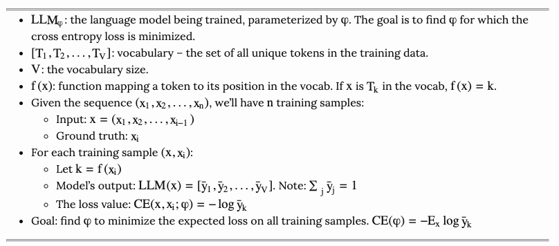 - Loss function to minimize during the training process: cross entropy, but only the tokens in the response are counted towards the loss.